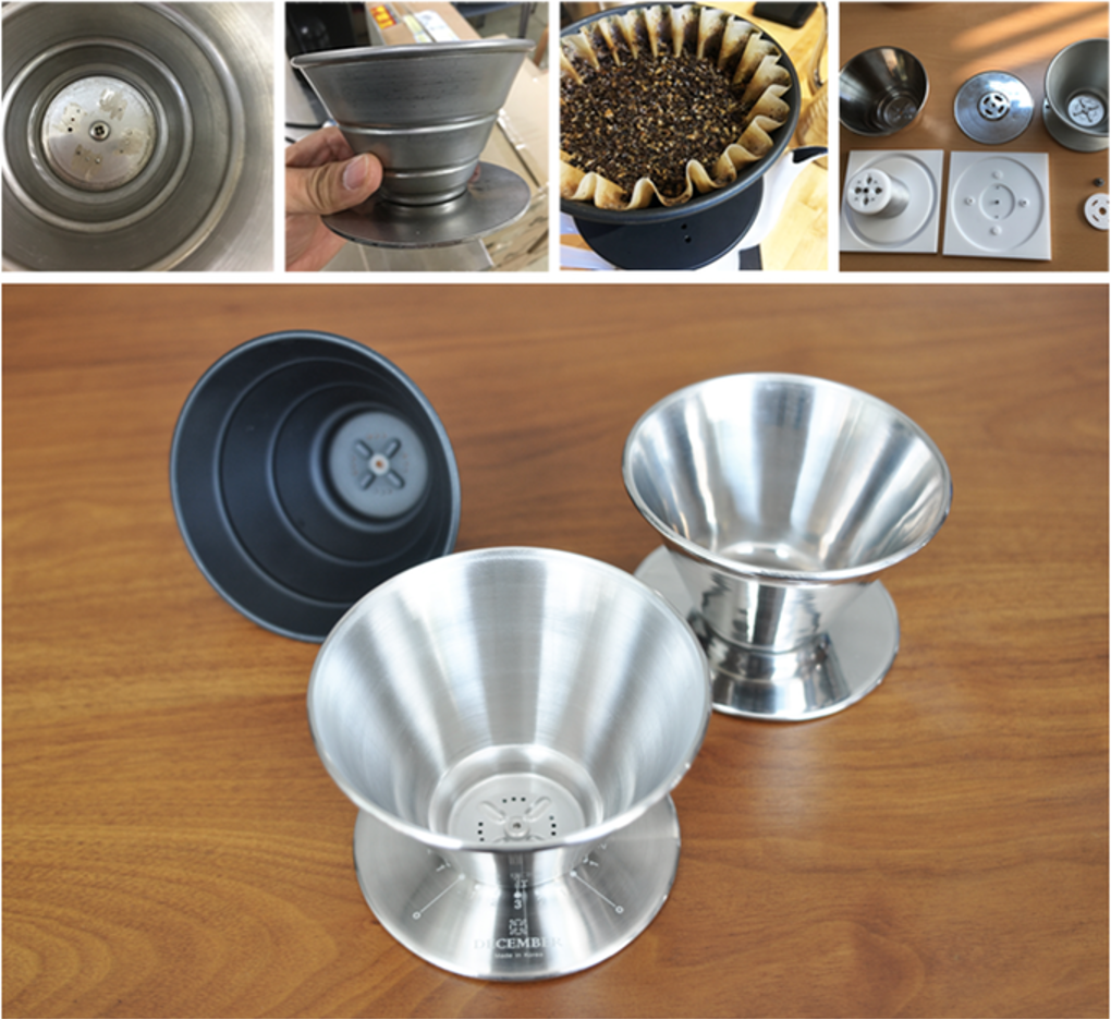 Der December Dripper wurde in Zusammenarbeit in San Francisco und Seoul entworfen und wird von Metallhandwerkern außerhalb von Seoul gefertigt. Aufgrund der Form und Gestalt des December Dripper werden sie einzeln von Hand gefertigt und nicht automatisch von einer computergesteuerten Maschine gefräst oder geformt.