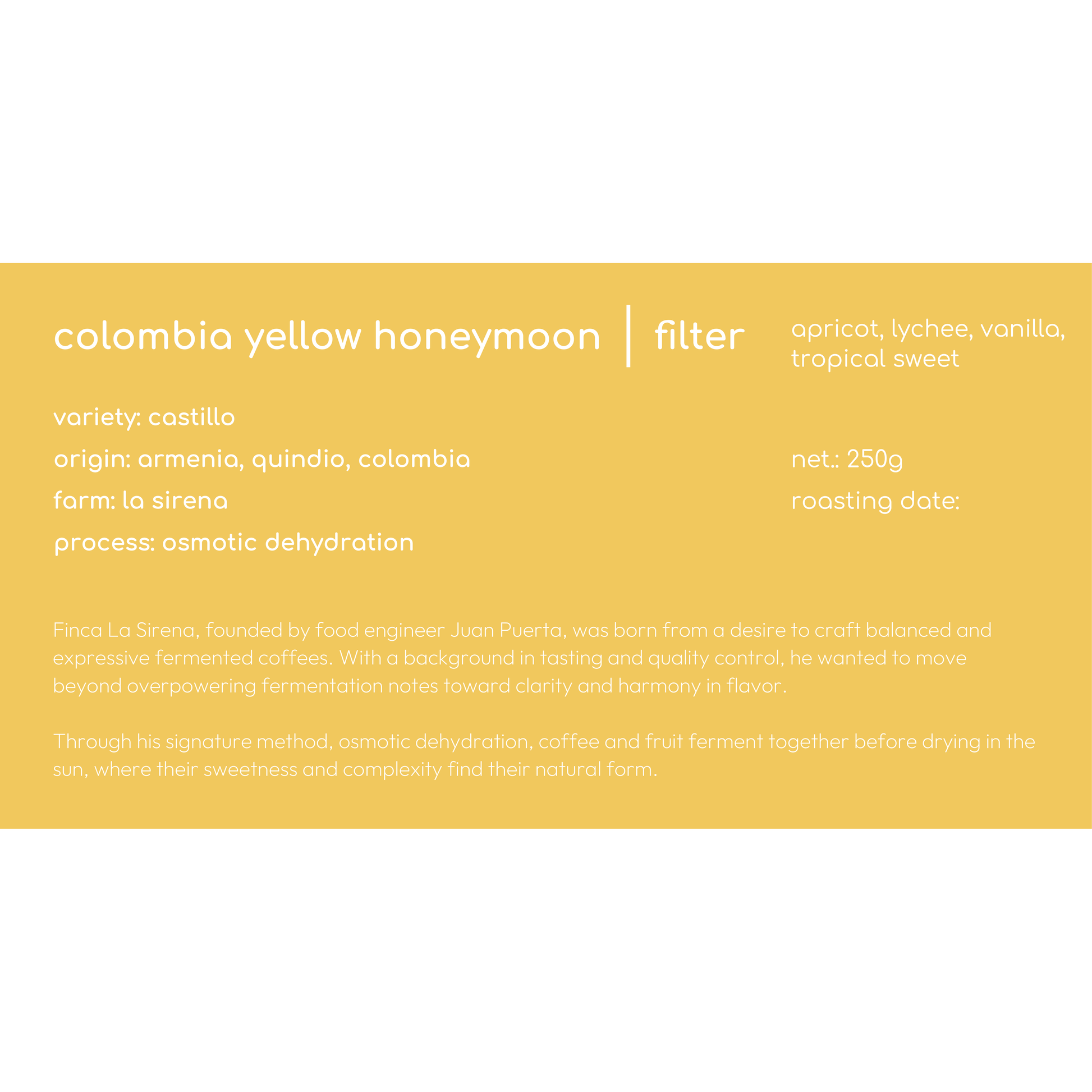 COLOMBIA YELLOW HONEYMOON FILTER COFFEE